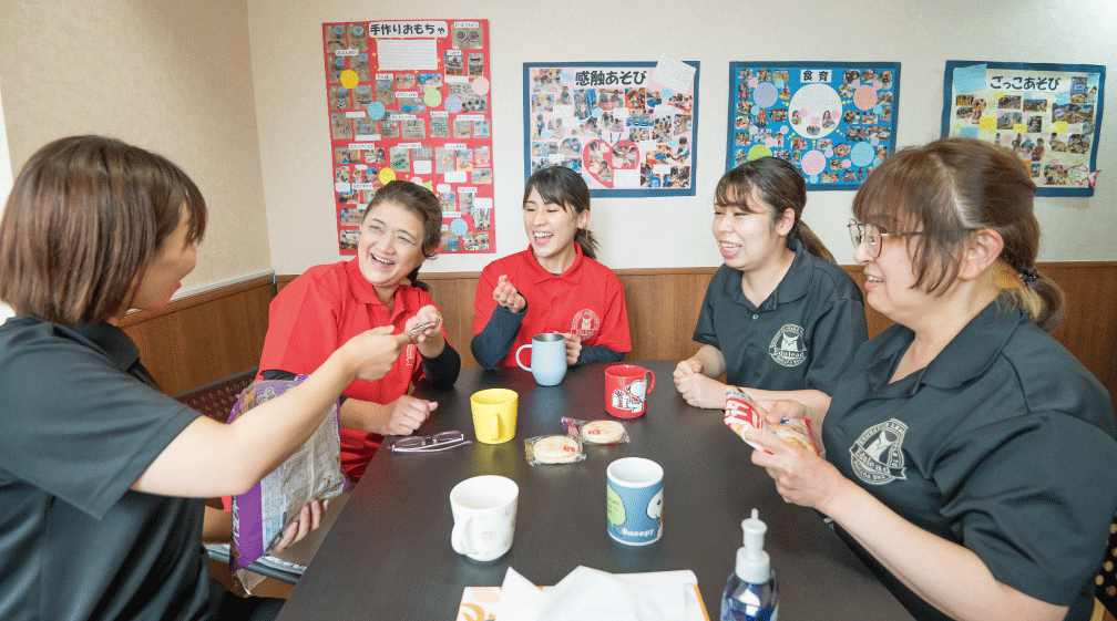 クラスの担任がメインで保護者とやりとりをしますが、日々の電話の受付や園からのお知らせを準備して担任に渡したり、朝と夕方の送り迎えでは保護者と顔を合わせて挨拶をしたり、子どもの大きくなる姿を一緒に見守ってもらう存在です!