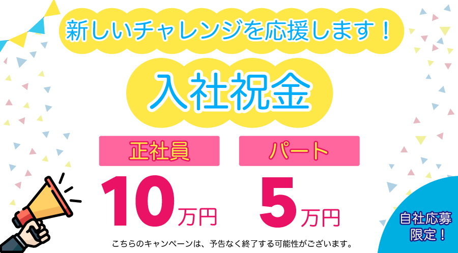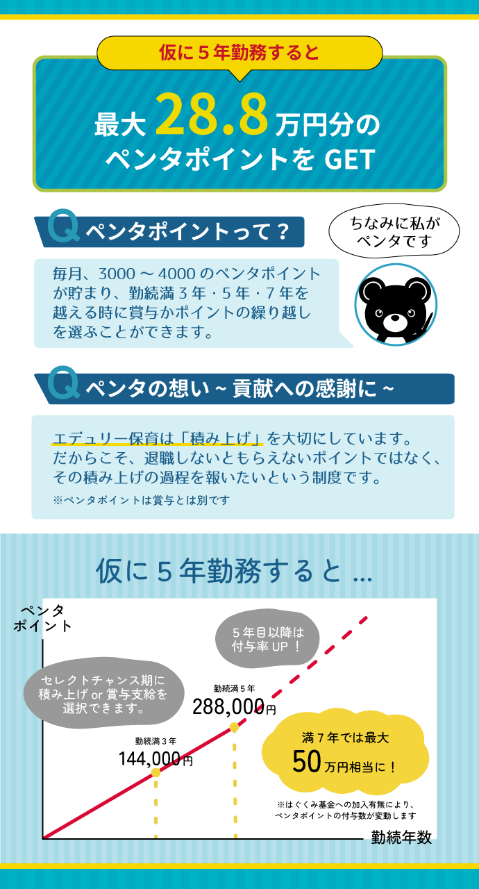 ●勤続ボーナスあり ●借上げ社宅制度 ●退職金制度(はぐくみ基金)