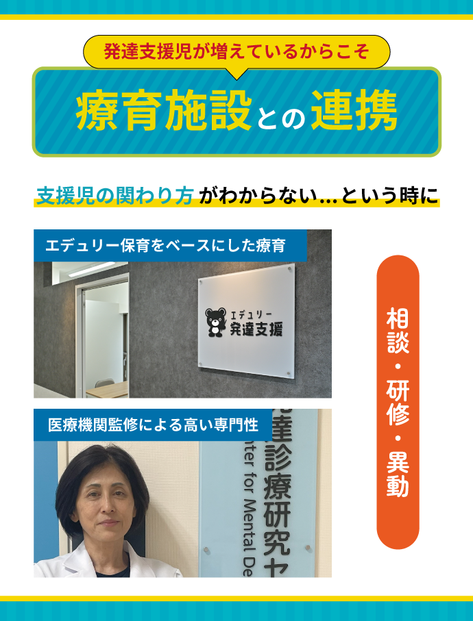 - エデュリーでは発達の特性を持った子どもに特化した0-6歳向けの療育教室を展開しています。保育園に支援が必要なお子様の割合は増えているからこそ、社内で専門家に相談できる体制を構築し、スタッフの専門的な学びの機会や子どもたちの潜在能力を最大化するという会社のミッション実現を目指しています。